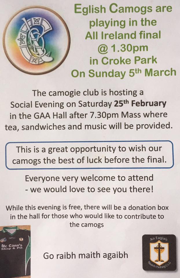 Eglish Camogs Social Evening this Saturday