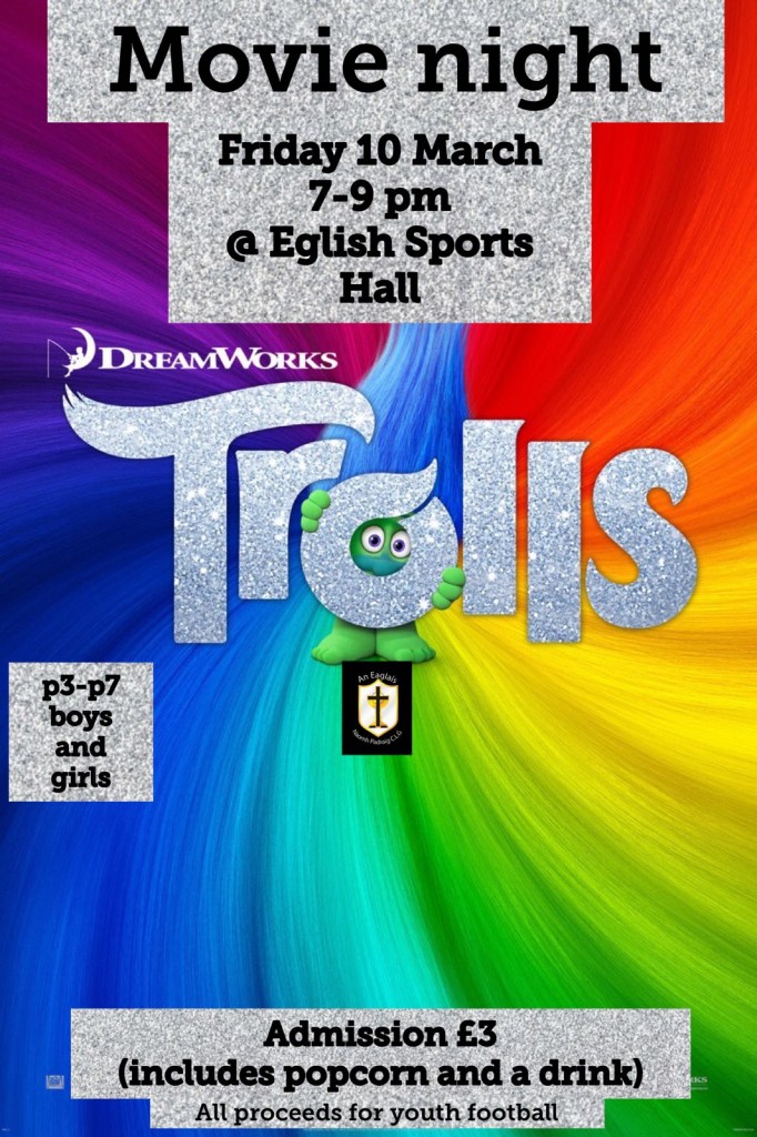 There will be another Movie Night on Friday 10th March for all p3-p7 boys and girls.
